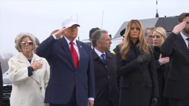 US President Donald Trump attended the return Saturday of the bodies of the first six US soldiers killed during the escalating war with Iran.Trump, wearing a white “USA” baseball cap and accompanied by several Cabinet members, saluted as each flag-draped case was carried from a military transport plane at Dover Air Force Base in Delaware, where the remains of US troops killed overseas are returned to American soil.
